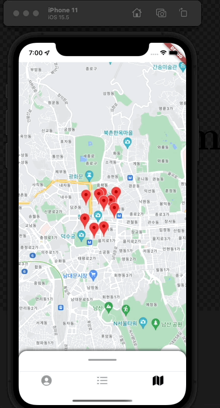Google map위에 있는 Marker를 클릭하거나, sheet을 드래그하면 화면의 하단에서 sheet이 올라오게 구현 할 예정입니다.