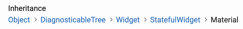- Clipping: clipBehavior이 Clip.none으로 설정되어있지 않다면, Material은 shape, type, 그리고 borderRadius으로 구체화되어있는 shape으로 위젯 sub-tree를 clip합니다. 디폴트로 성능을 고려하여 clipBehavior는 Clip.none으로 설정됩니다. Clipping이 어떤 효과를 미치는지 예시로 확인하고 싶다면 Ink 위젯을 참고하세요.