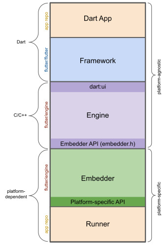 - Platform embedders의 overview: 모바일, 데스크탑 운영체제들이 Flutter 앱들을 실행 할 수 있게 해주는 코드