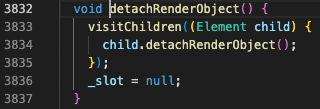 Render tree에서 renderObject를 제거하는 과정, 해당 함수를 자식들에게 재귀적으로 호출합니다.