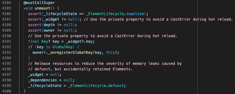widget, dependencies 초기화 시키고, element의 상태를 defunct로 설정
