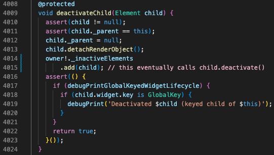 주석으로 "this eventually calls child.deactive()" 라고 되어 있는 부분이, 위의 1969 라인을 말하는 것 같다.