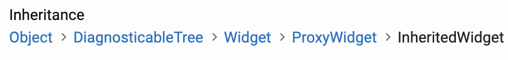 경우에 따라, inherited widget은 다른 클래스 구현의 세부사항일 수 있고 그러므로 private 입니다. of 메소드는 그런 경우에 public class에 적용됩니다. 예를 들면, Theme은 private inherited widget을 빌드하는 StatelessWidget로 구현됩니다.(StatelessWidget 안에 of 메소드가 있는 구조) Theme.of이 BuildContext.dependOnInheritedWidgetOfExactType을 사용하여 inherited widget을 탐색하고, ThemeData를 반환합니다.