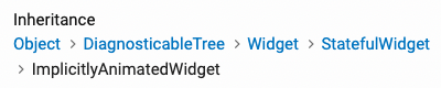 어떤 프로퍼티의 변화에 맞춰 애니메이트 될 지는 서브클래스가 결정합니다. 서브클래스들의 States는 반드시 ImplicitlyAnimatedWidgetState를 확장해야하고 애니메이션을 수행하기 위해 관련된 필드를 방문할 수 있게 해야합니다.